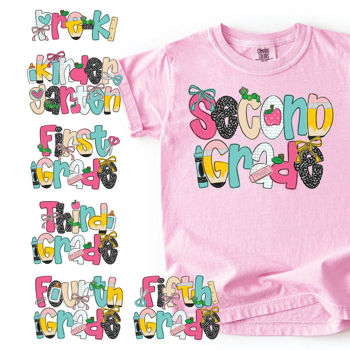 DTF printed on a Comfort Colors tee in Blue Jean! Size chart is listed for reference.